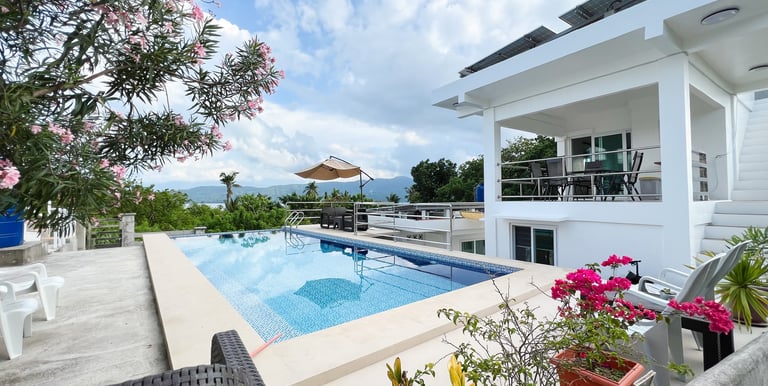 Enjoy our private swimming pool and breathtaking views of the sea and mountains during your stay.